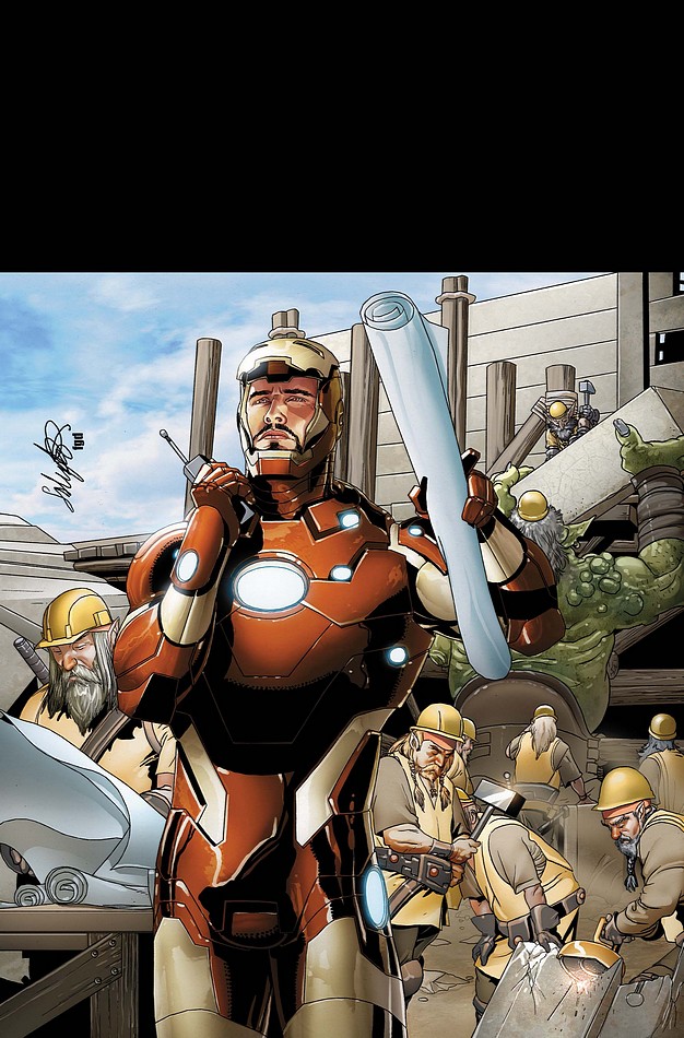 Be honest–who else got a Bob the Builder vibe from the cover of Invincible Iron Man #506, revealed today in Marvel's July 2011 solicitations? (Click thumbnail for a larger version.) Was it just me? Nah, impossible…