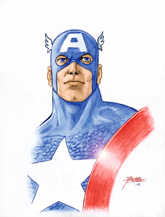 While you're at it, check out this commentary on my op-ed from The Displaced Plainsman, as well as my chapter on Captain America and modesty in the free e-book Superheroes: The Best of Philosophy and Pop Culture. (And, of course, the lovely George Perez portrait of Cap to the right!)